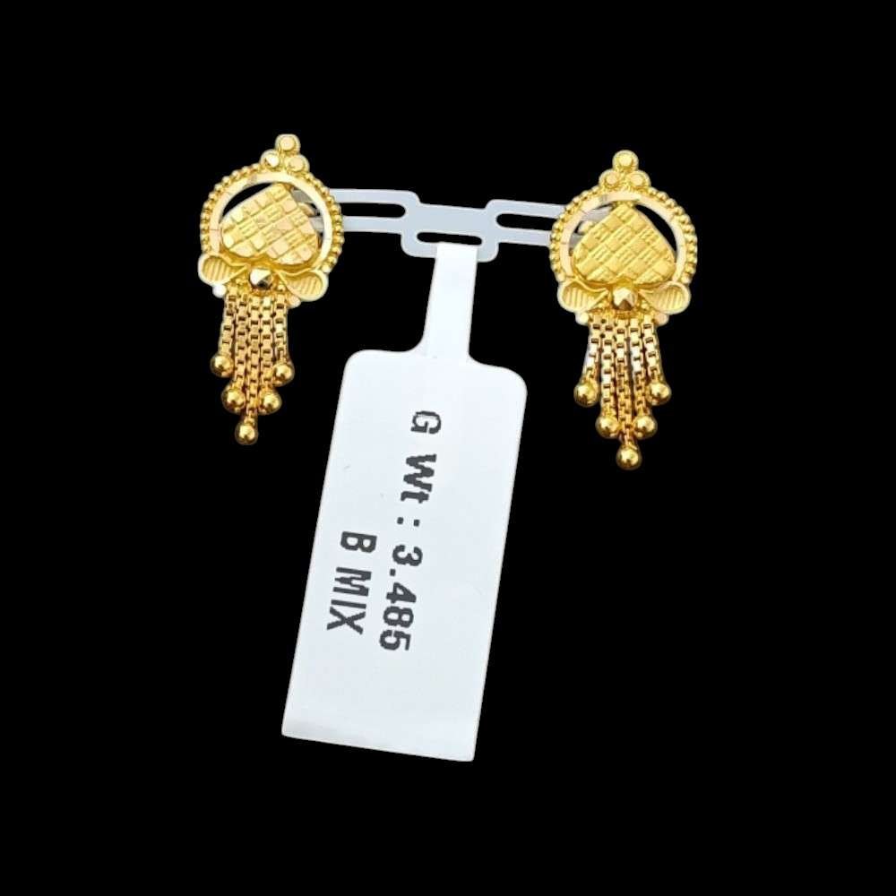 Elevate your ethnic look with these stunning 22KT, 18KT gold Chandbali dangle earrings, crafted with intricate filigree cutwork and a classic fan-shaped design. Featuring an ornate floral stud top, delicate hanging chains, and elegant tassel drops, these earrings beautifully blend traditional craftsmanship with timeless elegance. Perfect for bridal wear, festive celebrations, and special occasions.