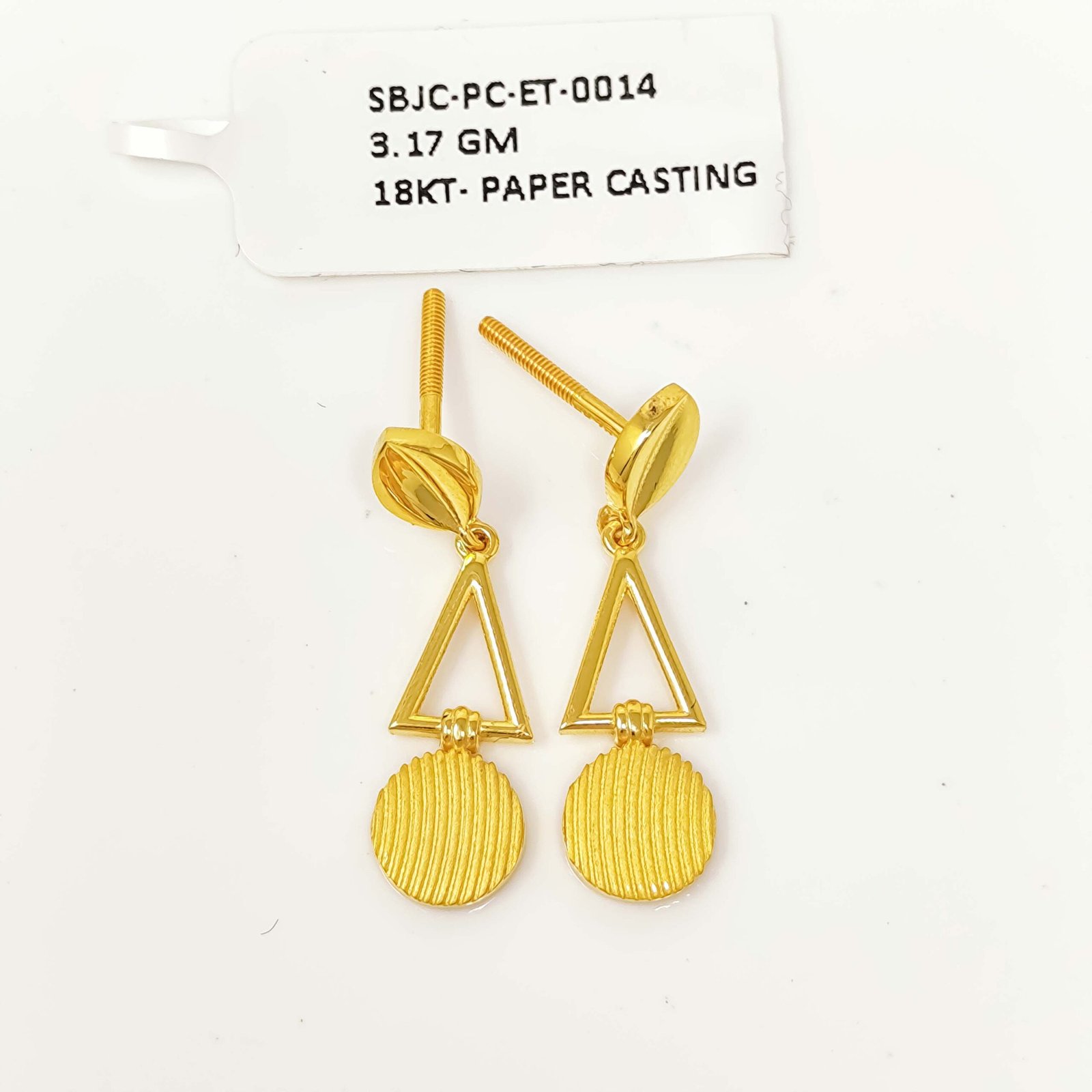 Introducing a stunning pair of gold earrings that beautifully blend artistry with wearability. Featuring an oval drop design crafted through the delicate paper casting technique, these earrings showcase an intricate cut-out pattern of geometric lines and curves that allow light to pass through, creating a gorgeous glowing effect. They are feather-light on the ears, making them ideal for all-day wear without any discomfort. The smooth dome stud top paired with the ornate dangling oval pendant strikes the perfect balance between simplicity and detail. Whether you’re dressing up for a special occasion or adding a touch of gold to your everyday look, these earrings are a timeless addition to any jewelry collection.