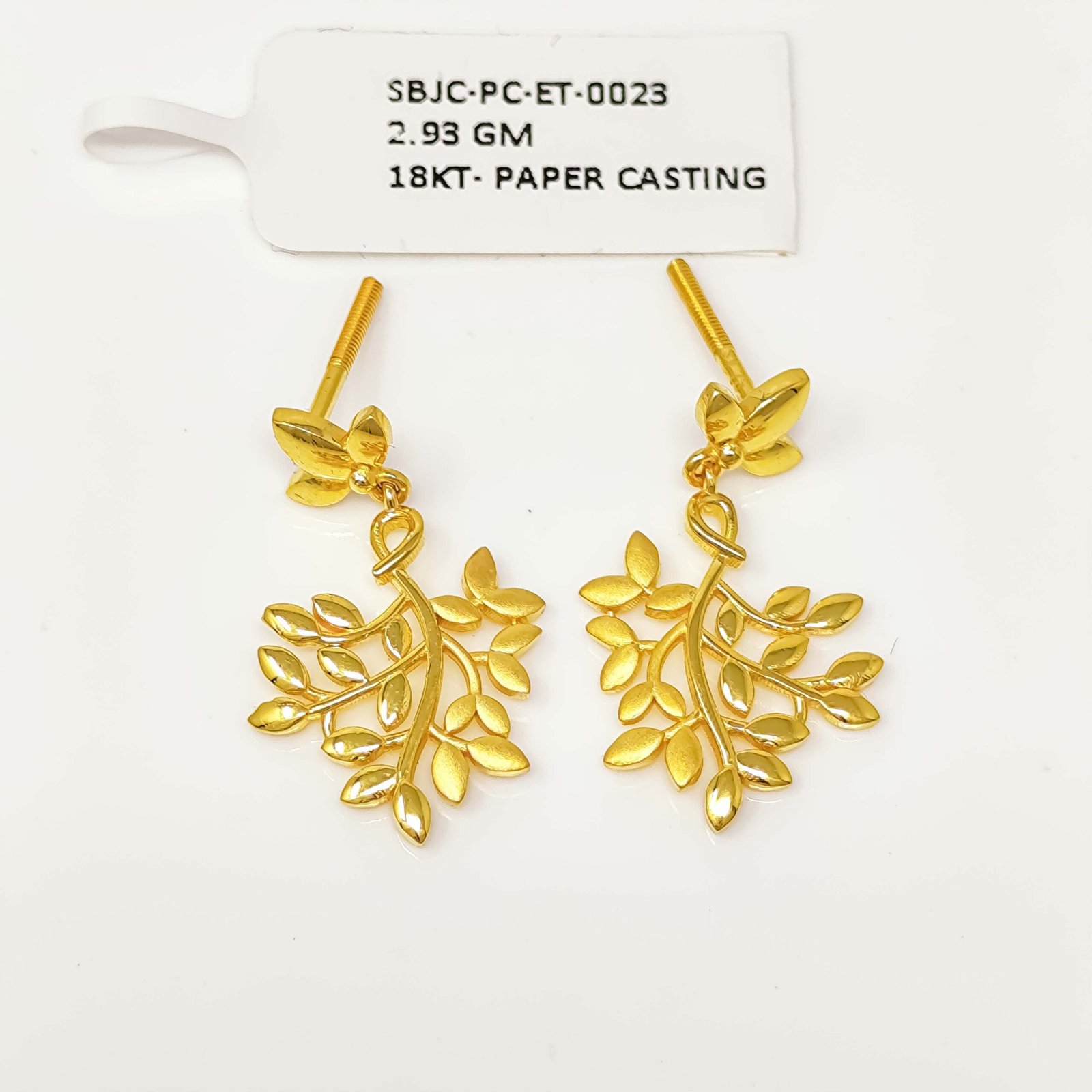 Introducing a stunning pair of gold earrings that beautifully blend artistry with wearability. Featuring an oval drop design crafted through the delicate paper casting technique, these earrings showcase an intricate cut-out pattern of geometric lines and curves that allow light to pass through, creating a gorgeous glowing effect. They are feather-light on the ears, making them ideal for all-day wear without any discomfort. The smooth dome stud top paired with the ornate dangling oval pendant strikes the perfect balance between simplicity and detail. Whether you’re dressing up for a special occasion or adding a touch of gold to your everyday look, these earrings are a timeless addition to any jewelry collection.