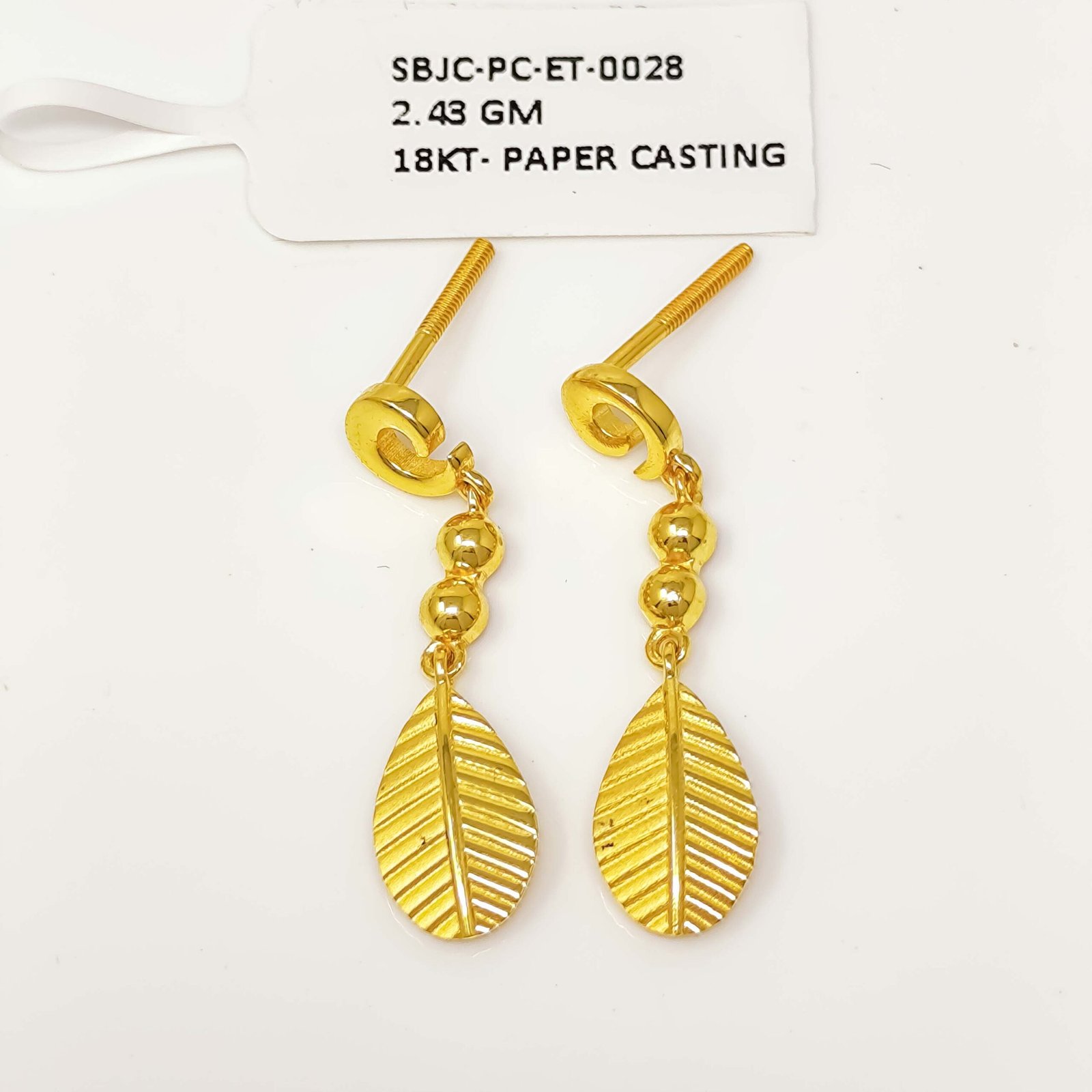 Introducing a stunning pair of gold earrings that beautifully blend artistry with wearability. Featuring an oval drop design crafted through the delicate paper casting technique, these earrings showcase an intricate cut-out pattern of geometric lines and curves that allow light to pass through, creating a gorgeous glowing effect. They are feather-light on the ears, making them ideal for all-day wear without any discomfort. The smooth dome stud top paired with the ornate dangling oval pendant strikes the perfect balance between simplicity and detail. Whether you’re dressing up for a special occasion or adding a touch of gold to your everyday look, these earrings are a timeless addition to any jewelry collection.