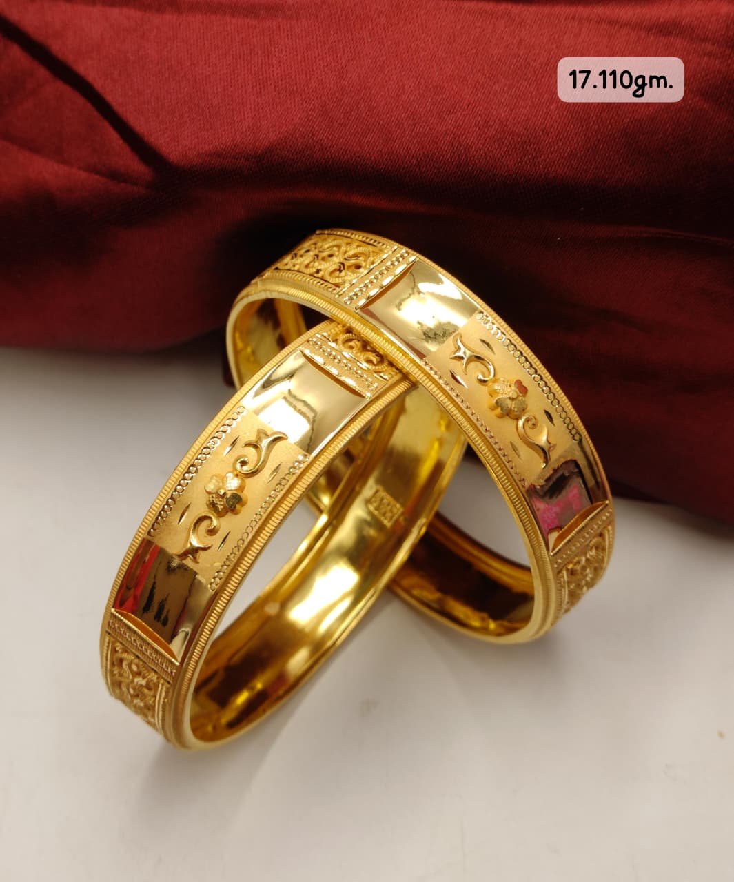 Beautiful handcrafted gold bangle featuring intricate patterns. Adds a touch of tradition to any outfit.
