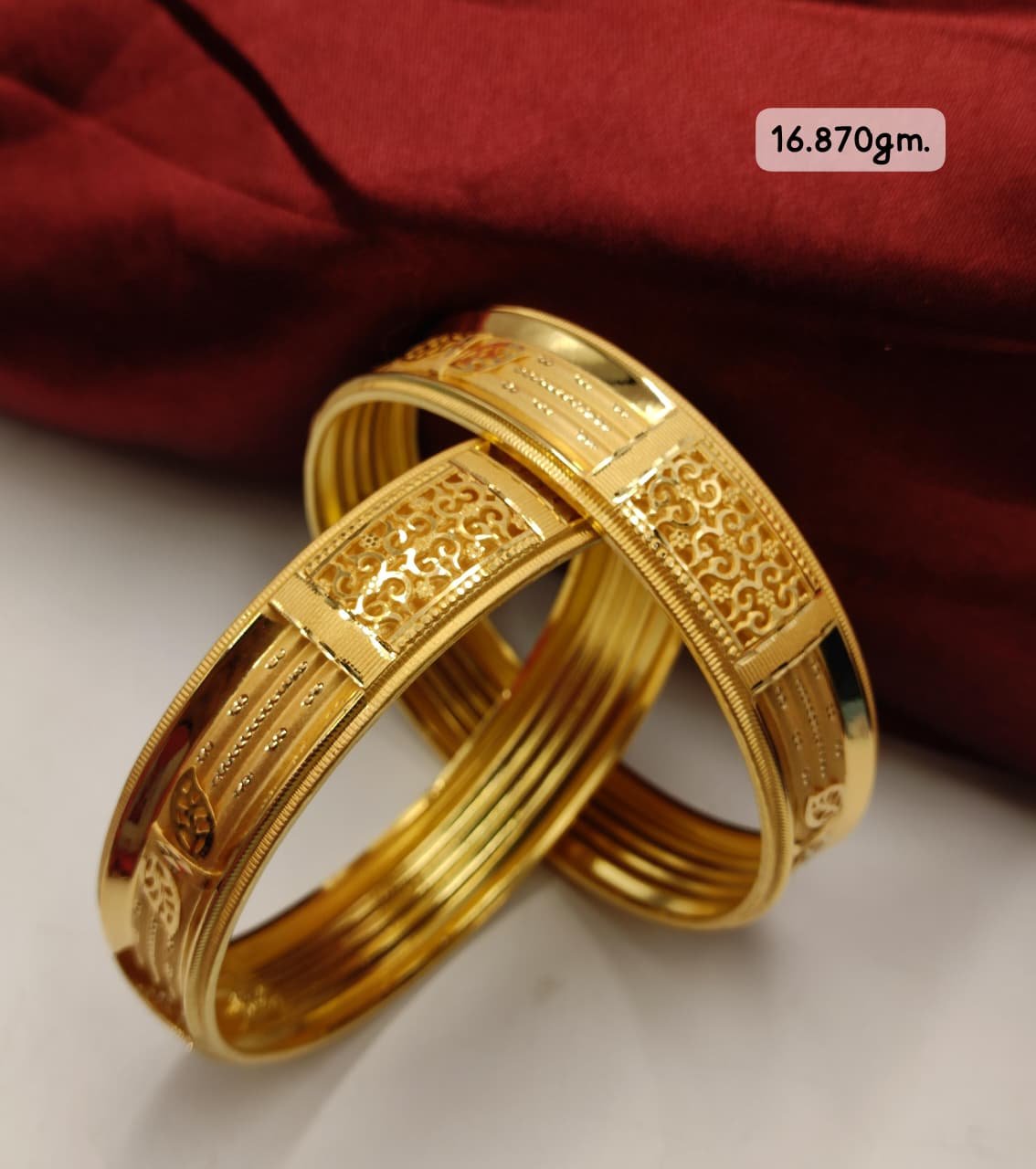 Step into timeless elegance with this antique finish gold bangle adorned with semi-precious stones. This masterpiece combines traditional goldsmithing techniques with contemporary design sensibilities. The oxidized finish gives it a vintage charm, while the carefully set stones add a pop of color and sparkle. The bangle features intricate temple-inspired motifs and delicate beadwork along the edges, showcasing hours of skilled craftsmanship. It offers excellent purity and lasting value. The comfortable inner curve ensures easy wear throughout the day. This bangle is perfect for brides, special occasions, or anyone who appreciates heritage jewelry with a modern twist. Each piece is unique due to the handcrafted nature of the work. Complete with authenticity certificate and secure clasp mechanism for added safety.