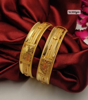 Step into timeless elegance with this antique finish gold bangle adorned with semi-precious stones. This masterpiece combines traditional goldsmithing techniques with contemporary design sensibilities. The oxidized finish gives it a vintage charm, while the carefully set stones add a pop of color and sparkle. The bangle features intricate temple-inspired motifs and delicate beadwork along the edges, showcasing hours of skilled craftsmanship. It offers excellent purity and lasting value. The comfortable inner curve ensures easy wear throughout the day. This bangle is perfect for brides, special occasions, or anyone who appreciates heritage jewelry with a modern twist. Each piece is unique due to the handcrafted nature of the work. Complete with authenticity certificate and secure clasp mechanism for added safety.